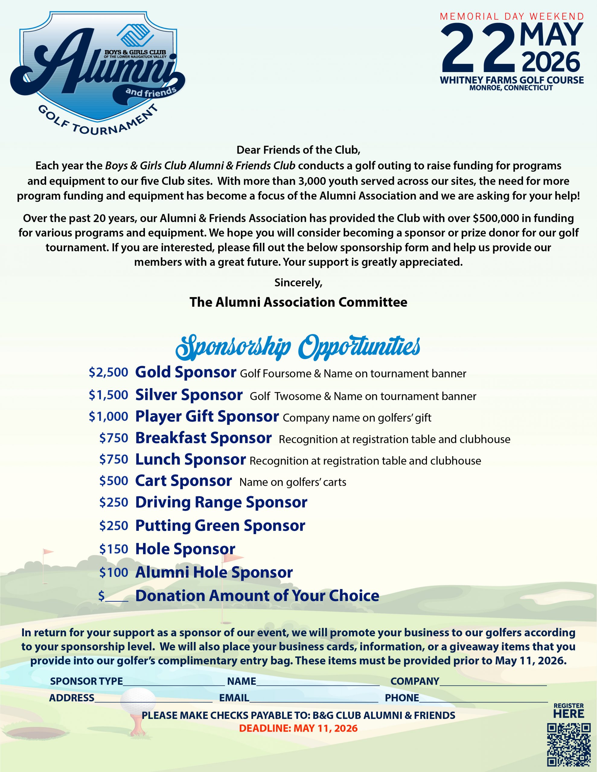 Every May our Alumni hit the links to raise money for our Boys & Girls Club. Over the years our tournament has been able to raise funds for capital projects, purchasing of equipment, and providing financial assistance to our Keystone Club and Torch Club leadership programs. If you’re interested in supporting our tournament—as a player, a sponsor, or with a prize donation—contact JimQueen@BGC-LNV.org.